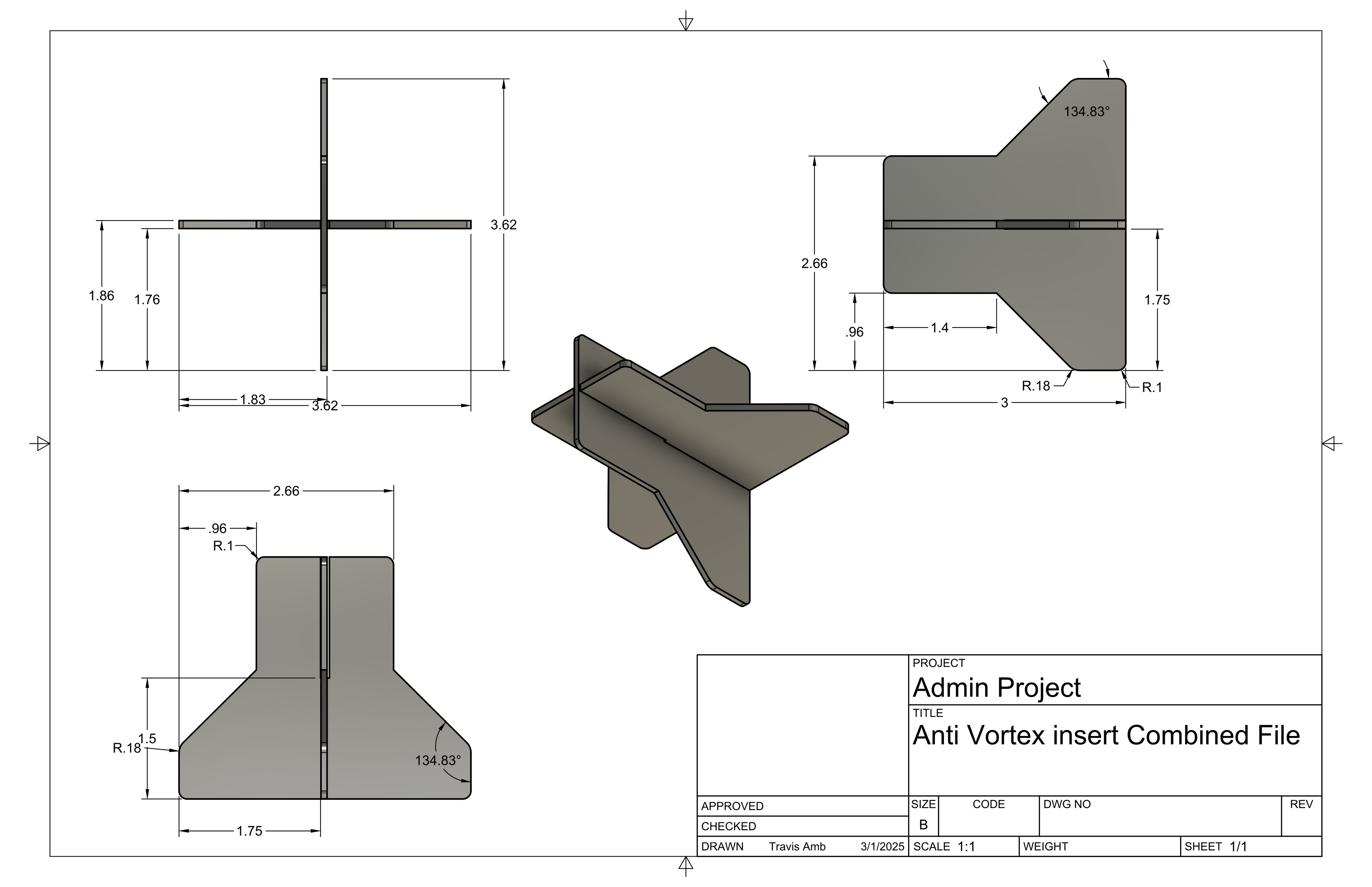 This high-quality stainless steel two-piece anti-vortex cross is specifically designed for use with 40 and 60-gallon Ace Rotomold chemical cones. Engineered to optimize chemical mixing and transfer processes, this essential accessory effectively prevents vortexing during fluid withdrawal, ensuring consistent and accurate dispensing.