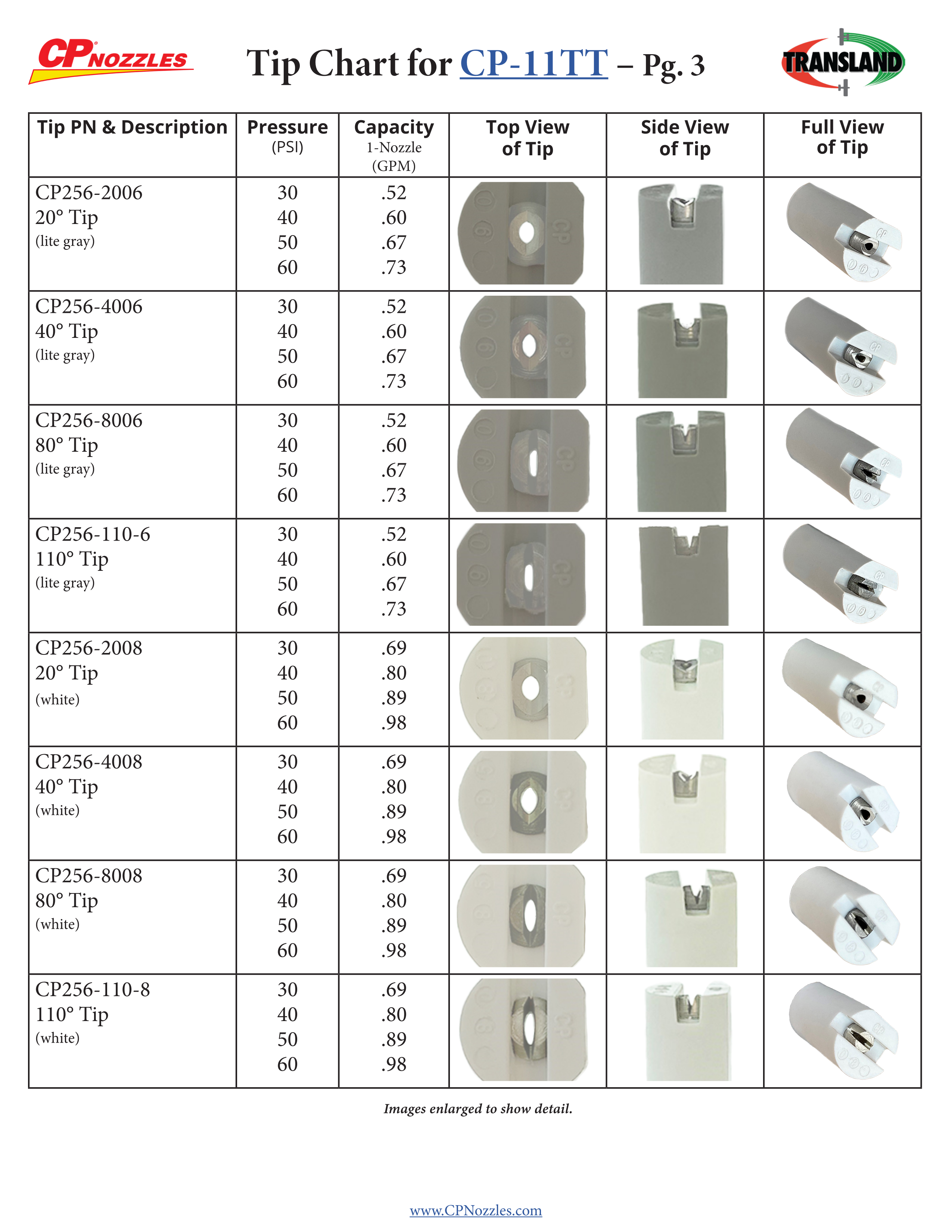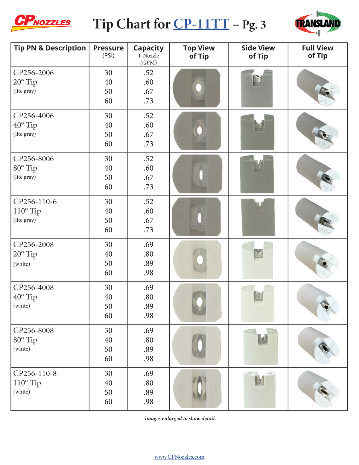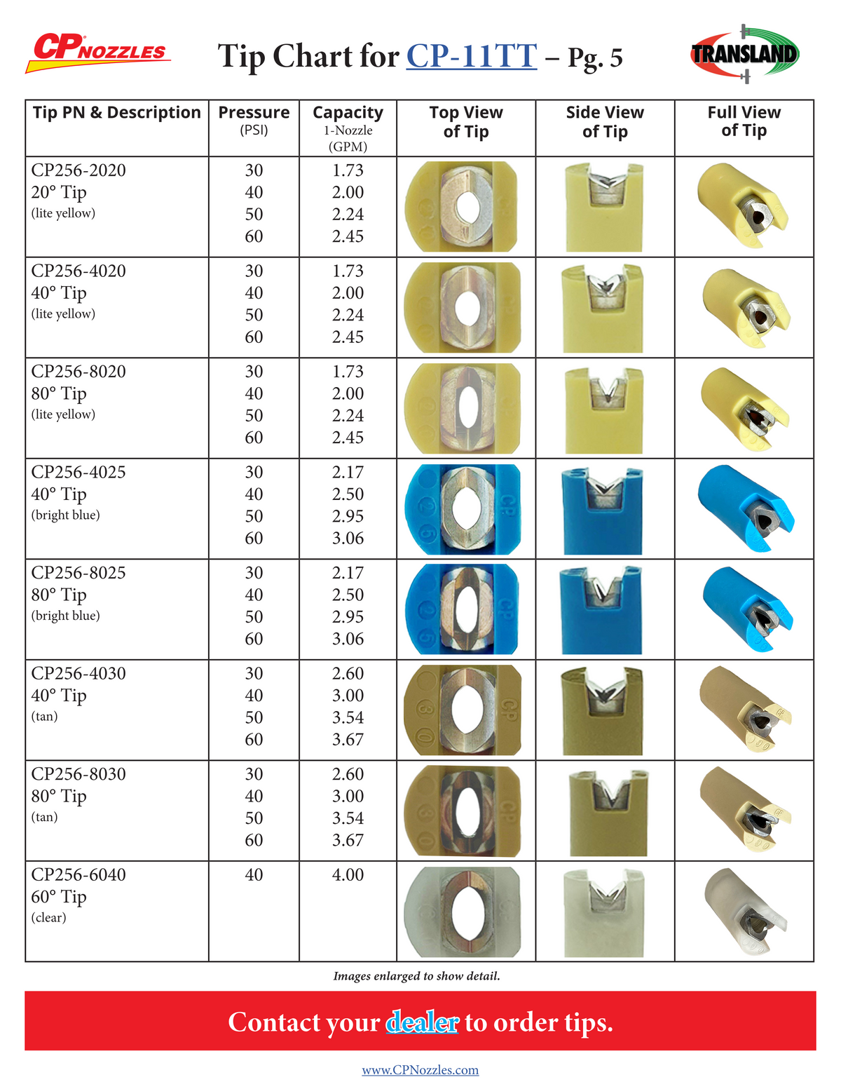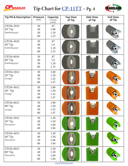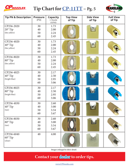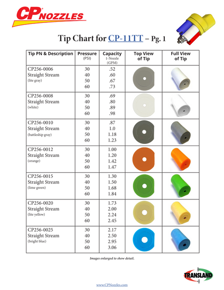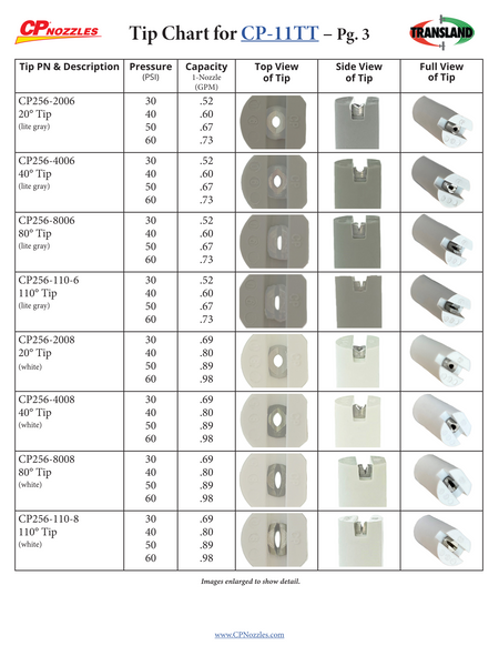 3 Tips of Customer Choice. View the CP-11TT Tip chart for flow rates.