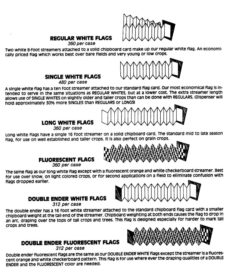 Long white flags have a single 16 foot streamer on a solid chipboard card. The standard mid to late season flag, for use on well established and taller crops. It is also perfect on grain crops.