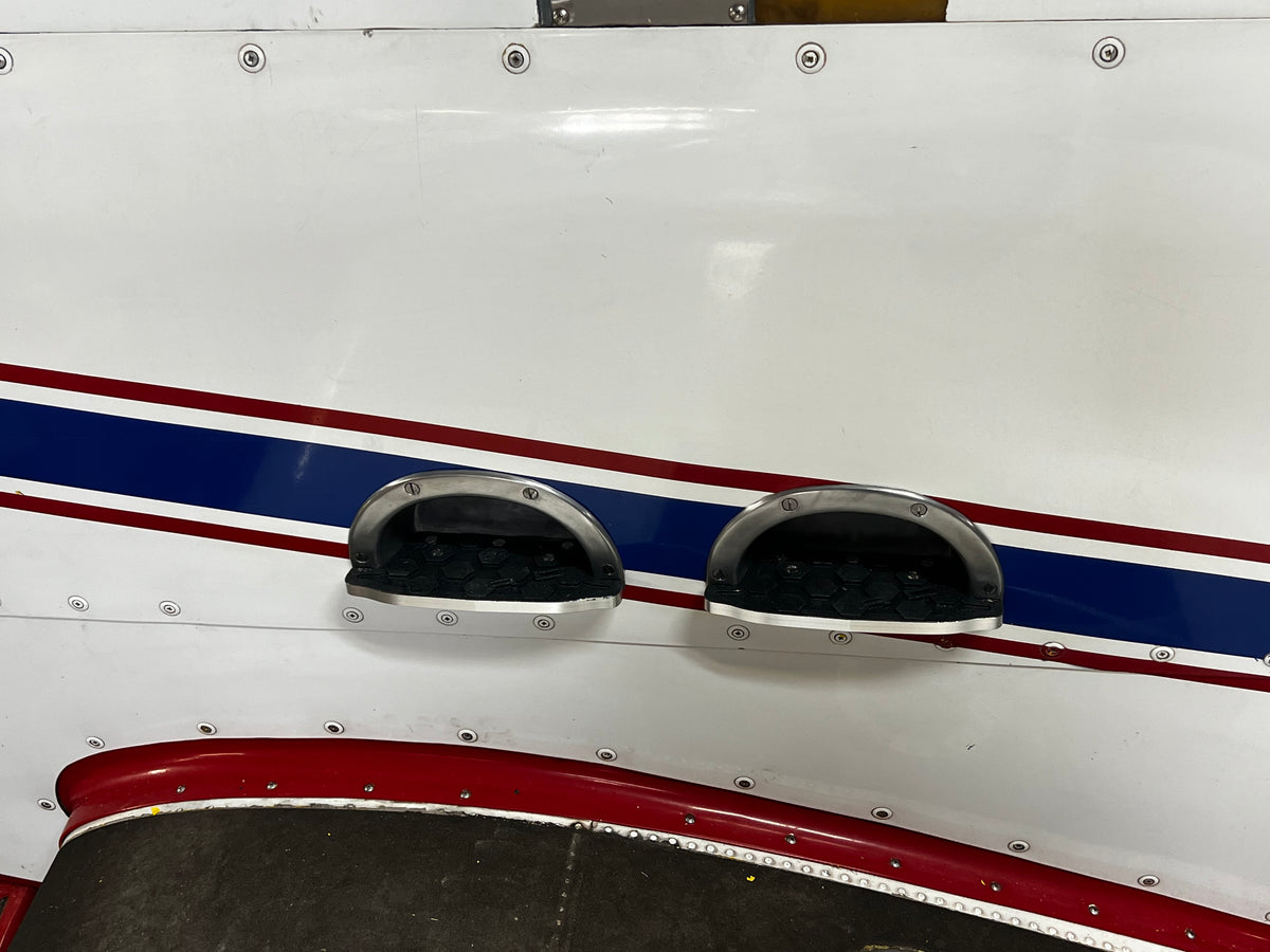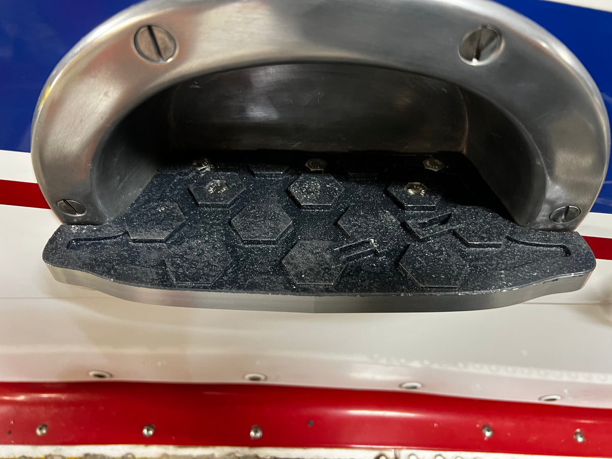 Amberican Designs' bolt on inset step extension gives a bigger platform, more grip, and another 1.5 inches of footing to navigate your Air Tractor. These extensions are designed to fit inside the existing step with no welding, cutting, or grinding. Drill five holes and bolt it on easy!