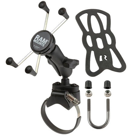 The RAM-B-231-2-UN10 consists of a steel strap base, stainless steel u-bolt base, double socket arm and universal spring loaded X-Grip® cradle for large phones and phablets. Designed for a clean installation, the RAM strap mount will accommodate most common roll bar sizes on UTV’s, allowing for the placement of the RAM rubber ball base. This mount can also be attached to smaller diameter handlebars on ATVs using the included hardware. The included X-Grip® cradle has a clean and clever four leg design that sports great holding power without hiding your phone behind foam pads and plastic. The spring loaded X-Grip® cradle expands and contracts, allowing for a perfect custom fit of your cell phone. The perfect complement to the modern sleek interior of today's vehicles, the RAM X-Grip® is the cell phone cradle evolved. The X-Grip® includes a device tether recommended for outdoor applications. The cradle is compatible with handheld devices that will fit the dimensions listed below. It is important to verify the dimensions of your handheld device with a case/sleeve/skin when determining the overall size.