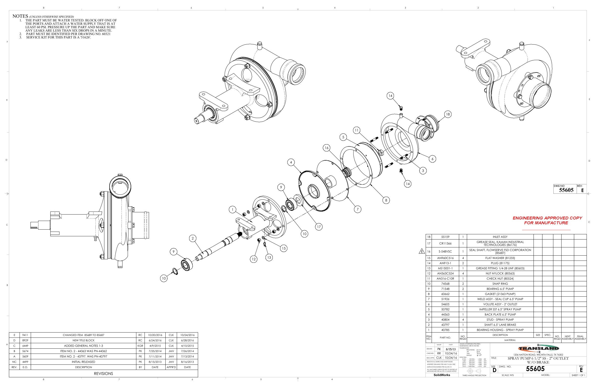 Transland 55605 – 6½" Stainless Steel Spray Pump (2" Outlet 3" Inlet) 402/502 w/Diagram